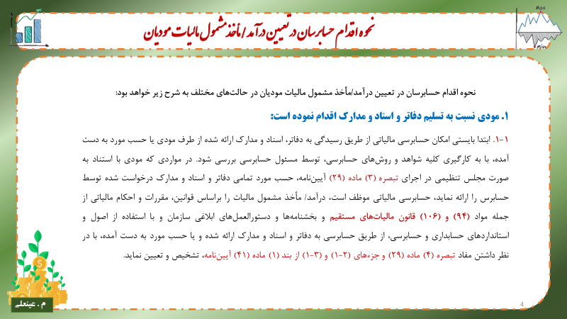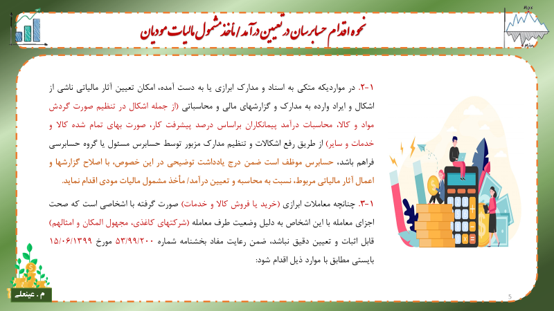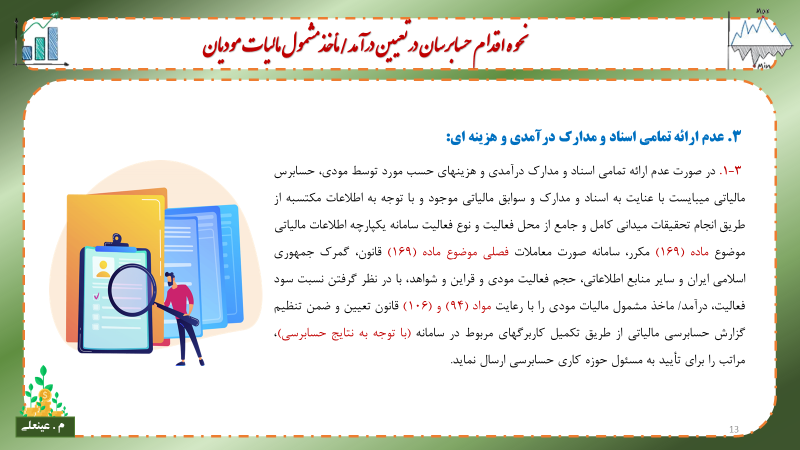 نحوه اقدام حسابرسان در تعیین درآمد/مآخذ مشمول مالیات مودیان